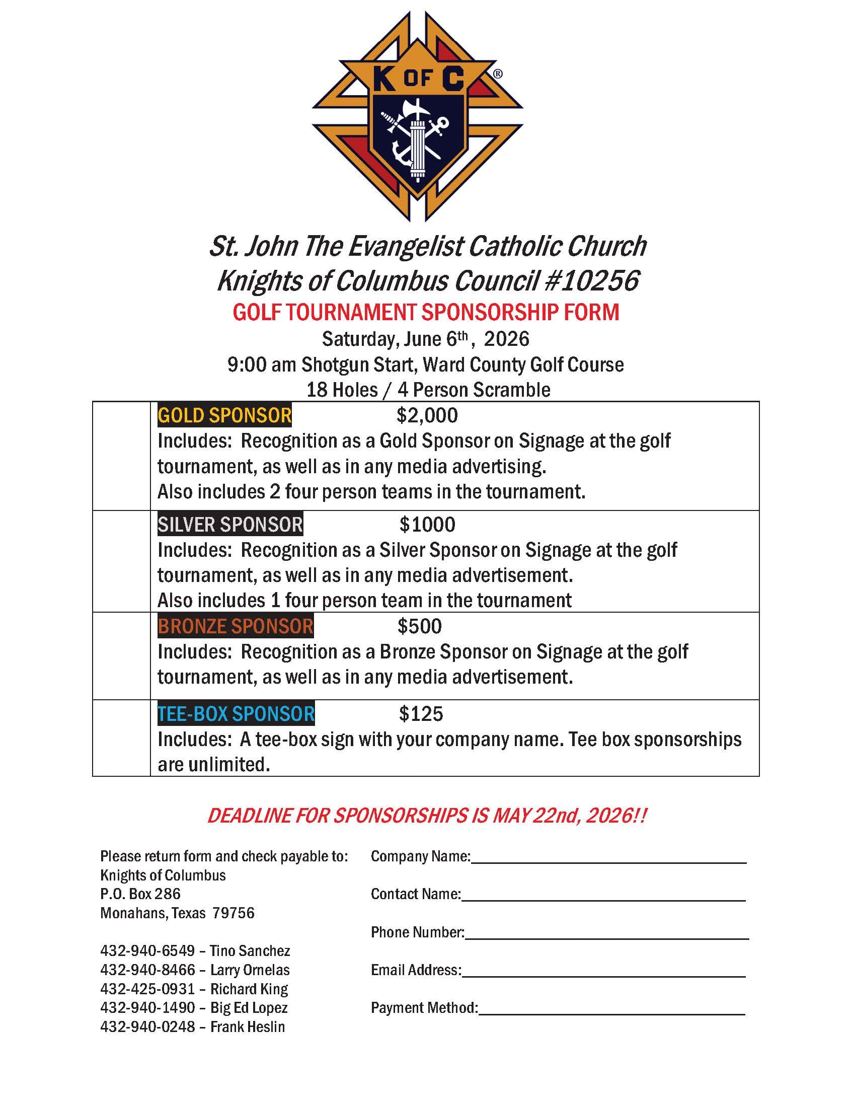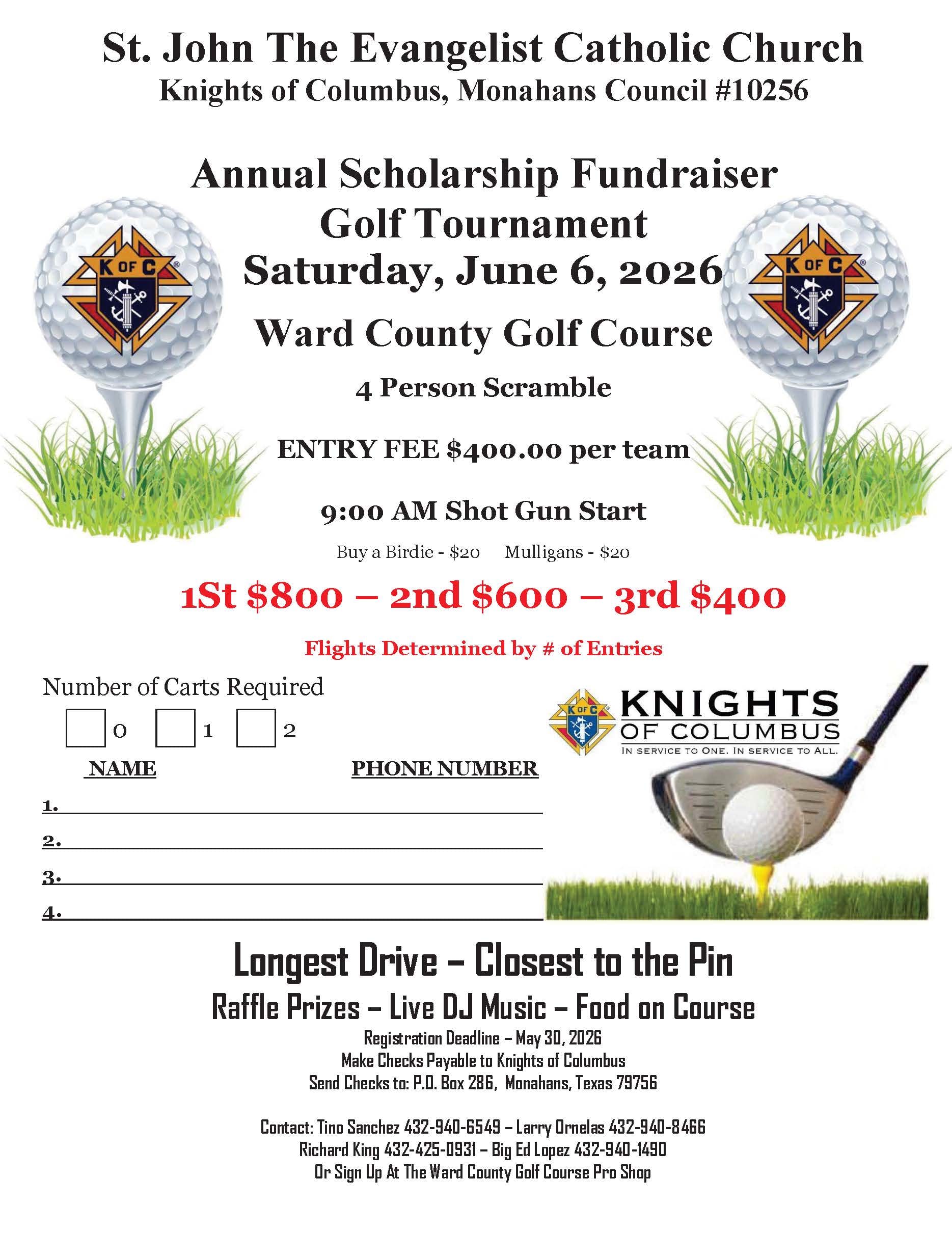 Knights of Columbus Annual Scholarship Fundraiser Golf Tournament